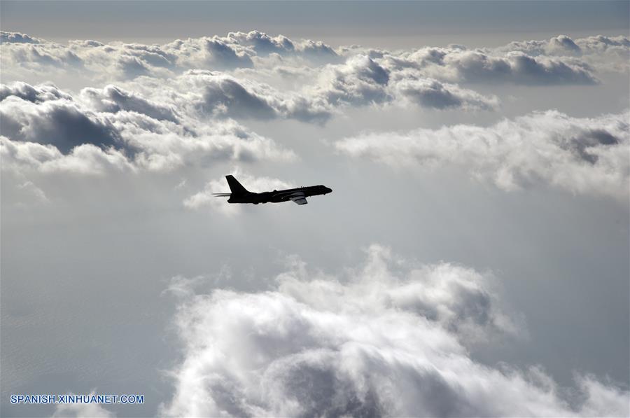 Un bombardero H-6K es captado realizando ejercicios de entrenamiento, en el Mar Meridional de China, el 23 de noviembre de 2017. (Xinhua/Wang Guosong)
