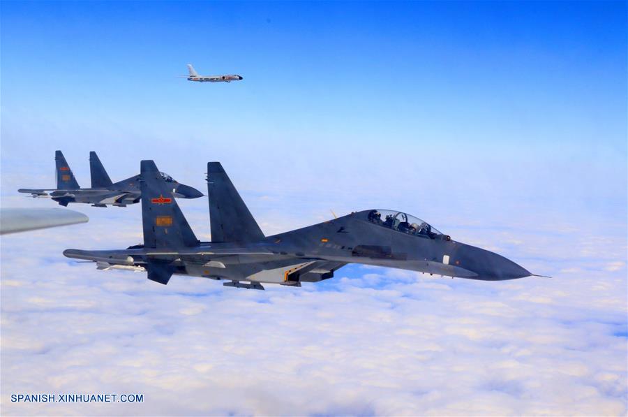 Imagen del 19 de noviembre de 2017 de aviones de la fuerza aérea del Ejército Popular de Liberación (EPL) realizando ejercicios de entrenamiento, en el Mar Meridional de China. (Xinhua/Chen Liang)