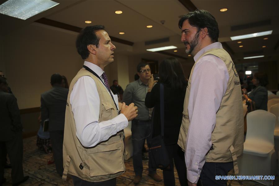 TEGUCIGALPA, noviembre 29, 2017 (Xinhua) -- Los integrantes de la Misión de Observación Electoral (MOE) de la Organización de Estados Americanos (OEA), el expresidente de Bolivia Jorge Quiroga (i), y el director para la Cooperación y Observación Electoral Gerardo de Icaza (d), participan durante una conferencia de prensa luego de las elecciones del domingo, en Tegucigalpa, Honduras, el 29 de noviembre de 2017. La Misión de Observación Electoral (MOE) de la Organización de los Estados Americanos (OEA) en Honduras, llamó a la ciudadanía a mantener la calma mientras se esperan los resultados oficiales de las elecciones generales del 26 de noviembre. Instó además al Tribunal Supremo Electoral (TSE) a agilizar el procesamiento y divulgación de resultados, así como dar a conocer a la ciudadanía la información de que disponen lo antes posible. (Xinhua/Rafael Ochoa)
