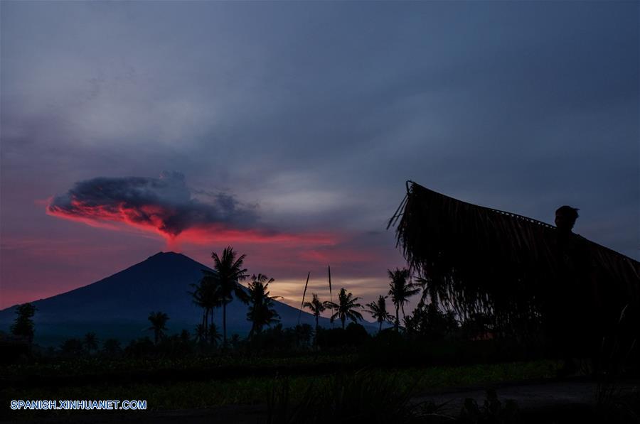 El Monte Agung expulsa ceniza volcánica, en la villa de Amed, distrito de Karangasem, Bali, Indonesia, el 30 de noviembre de 2017. (Xinhua/Veri Sanovri)