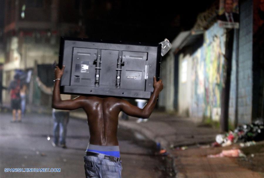 Una persona carga una pantalla en el marco del toque de queda tras las elecciones presidenciales, en Tegucigalpa, Honduras, durante las últimas horas del 2 de diciembre de 2017. (Xinhua/Johny Magallanes)