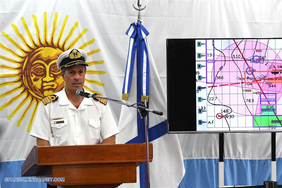 Este domingo, el portavoz de la Armada en Buenos Aires, el capitán Enrique Balbi, compareció ante la prensa, y dijo que la fuerza busca determinar si un "contacto metálico" a 950 metros de profundidad corresponde al sumergible.