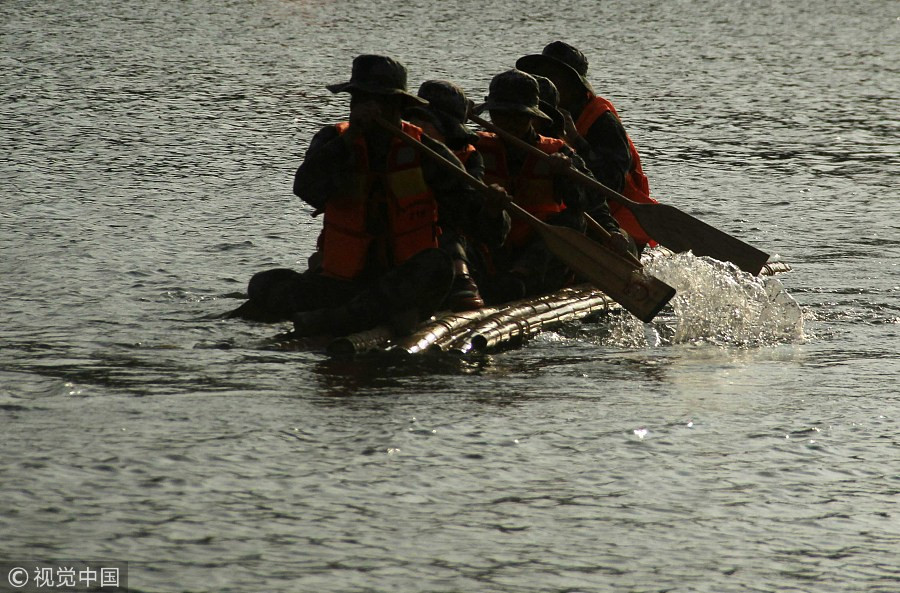 Los estudiantes de la Universidad Yang-En disfrutan de un curso opcional de capacitación de supervivencia en Quanzhou, provincia de Fujian que incluyen a sobrevivir en el agua, simular combates, recolectar hortalizas, comer pescado crudo y acampar al aire libre, 2 de diciembre del 2017. [Foto: VCG]