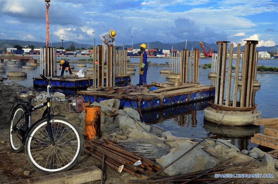 Imagen del 27 de noviembre de 2017, de trabajadores laborando en el proyecto de modernización del puerto de Santiago de Cuba, Cuba. (Xinhua/Joaquín Hernández)