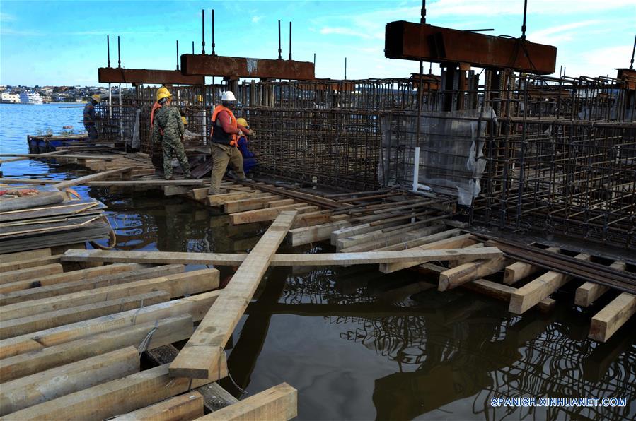 Imagen del 27 de noviembre de 2017, de trabajadores laborando en el proyecto de modernización del puerto de Santiago de Cuba, Cuba. (Xinhua/Joaquín Hernández)