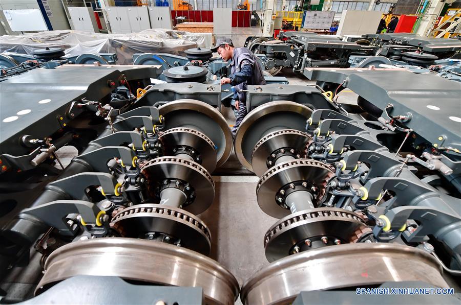 Imagen del 6 de diciembre de 2017 de empleados trabajando en una fábrica de manufactura de trenes, en Tangshan, provincia de Hebei, en el norte de China. Tangshan ha estado desarrollando equipo de fábrica como una de sus nuevas ofertas de crecimiento a pesar del recorte continuo de la sobrecapacidad del acero. (Xinhua/Yang Shiyao)