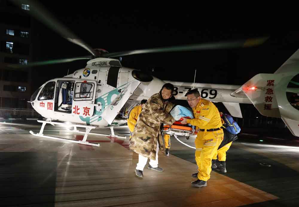 Beijing, 15/12/2017 (El Pueblo en Línea) -Este jueves, un se?or de 82 a?os que padecía problemas de pulmón sufrió una insuficiencia respiratoria. Su familia llamó al 999 (primeros auxilios)y fue transladado en helicóptero-ambulancia al Hospital de la Amistad Chino-Japonés. El trayecto cubrió180 kilómetros. El Hospital de la Amistad Chino-Japonésera el más cercano y accesible vía áerea.