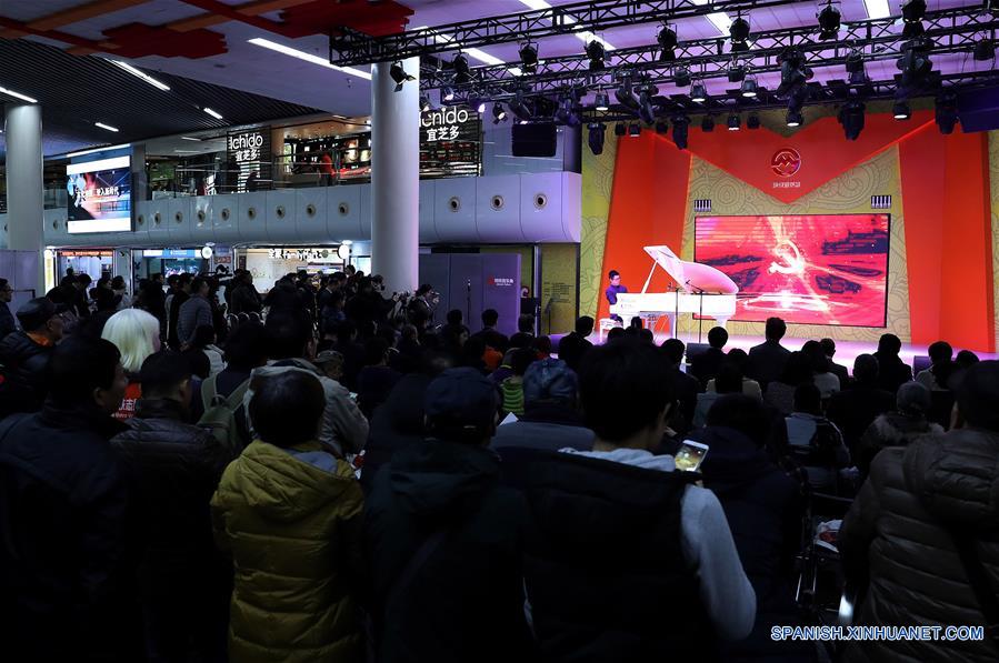 SHANGHAI, diciembre 16, 2017 (Xinhua) -- El compositor Gong Tianpeng toca el piano durante un espectáculo de caridad llevado a cabo en la Estación de Metro Plaza del Pueblo, en Shanghai, en el este de China, el 16 de diciembre de 2017. Este es el espectáculo de caridad número 500 que se lleva a cabo cada fin de semana en las zonas de música del metro en Shanghai. (Xinhua/Fang Zhe)