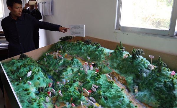 Xiao Han explica el dise?o de la aldea Yikoudao utilizando un modelo a escala reducida instalado en su oficina. (Foto: Yang Jun)