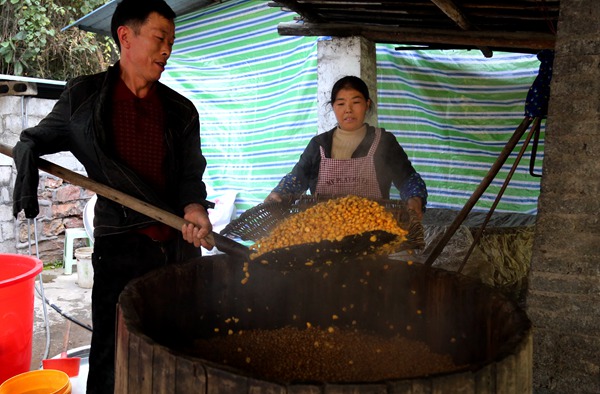Deng Zaiquan, un aldeano que planeareubicarse en Tongren, junto a su esposa. (Foto: Yang Jun)