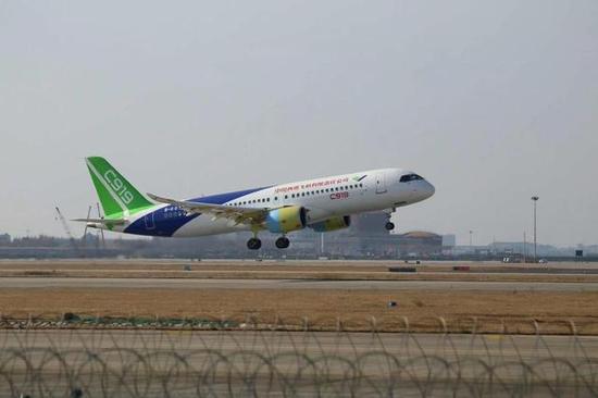 El primer C919 realizó su vuelo inaugural en mayo y su primer vuelo de prueba interurbano en noviembre.