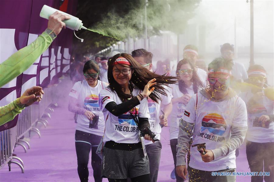 GUANGZHOU, diciembre 18, 2017 (Xinhua) -- Imagen del 16 de diciembre de 2017 de personas participando durante la carrera del color en Guangzhou, capital de la provincia de Guangdong, en el sur de China. Cerca de 15,000 participantes compitieron en el evento. (Xinhua/Wu Lu)