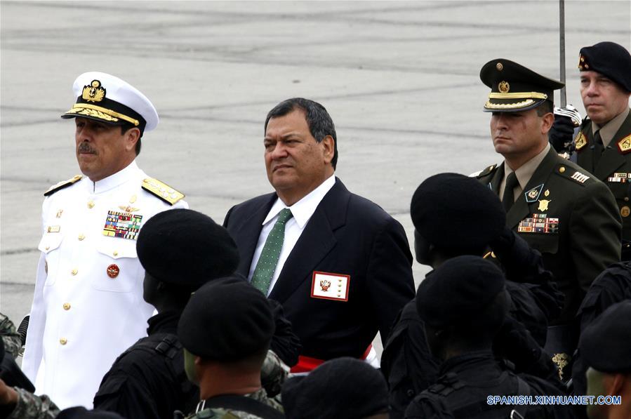 LIMA, diciembre 19, 2017 (Xinhua) -- El ministro de Defensa de Perú, Jorge Nieto Montesinos (c-atrás), pasa revista a las tropas de las Fuerzas Armadas peruanas mientras preside la ceremonia de reconocimiento del nuevo comandante general del Ejército de Perú, César Augusto Astudillo Salcedo, en la Plaza Cáceres del Cuartel General del Ejército del distrito de San Borja, Lima, Perú, el 19 de diciembre de 2017. El general César Augusto Astudillo Salcedo fue nombrado el martes comandante general del Ejército en reemplazo del general de división Luis Humberto Ramos Hume, de acuerdo con información de la prensa local. (Xinhua/Luis Camacho)