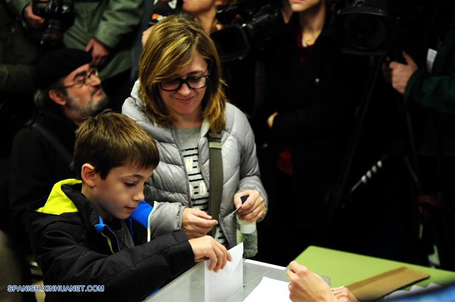 Ciudadanos de Barcelona emiten su voto un centro electoral, en Barcelona, Espa?a, el 21 de diciembre de 2017.(Xinhua/Guo Qiuda)