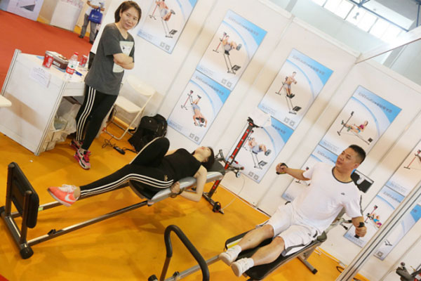 Equipos domésticos para ejercicios físicos se exhiben en una exposición en Beijing, 18 de julio del 2015. [Foto: VCG]