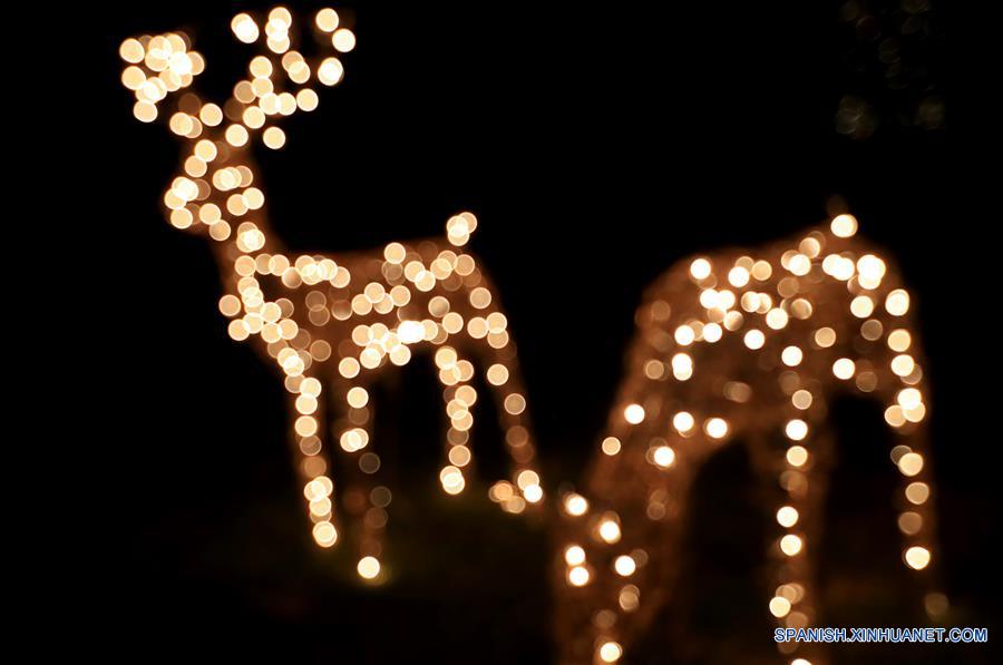 Imagen del 24 de diciembre de 2017, de decoraciones y luces navide?as encendidas frente a una casa durante la Navidad, en Los Angeles, Estados Unidos. (Xinhua/Li Ying)