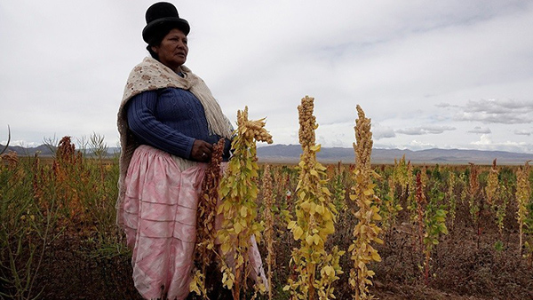 Una mujer aimara en un campo de quinua en La Paz, Bolivia, el 22 de abril de 2017.