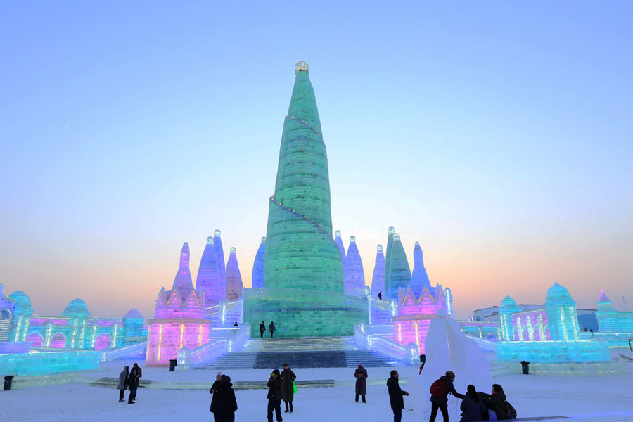 Los visitantes admiran el hermoso “Mundo del Hielo” de la ciudad de Harbin, provincia de Heilongjiang, 26 de diciembre del 2017. [Foto: IC]