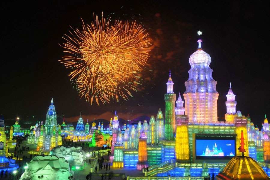 El Mundo del Hielo en Harbin: fuegos artificiales, castillos y fantasía. 26 de diciembre del 2017. [Foto: IC]