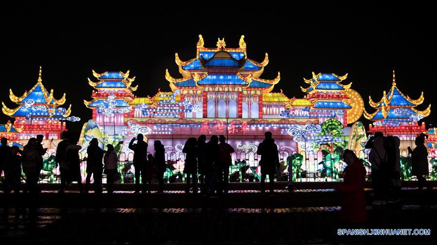 HUBEI, enero 1, 2018 (Xinhua) -- Personas disfrutan de las linternas festivas en la ciudad de Wuhan, en la provincia de Hubei, en el centro de China, el 1 de enero de 2018. (Xinhua/Cheng Min)