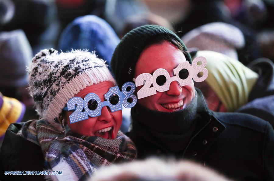 NUEVA YORK, enero 1, 2018 (Xinhua) -- Imagen del 31 de enero de 2017, de personas asistiendo a la celebración del A?o Nuevo en Times Square, Nueva York, Estados Unidos. (Xinhua/Wang Ying)