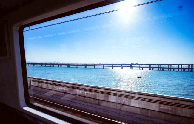 La foto del 31 de diciembre de 2017 muestra las vistas al mar a lo largo de la línea 1 del metro en Xiamen, provincia de Fujian. [Foto: Weibo.com]