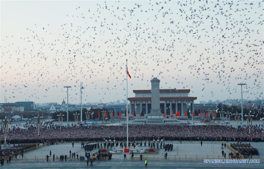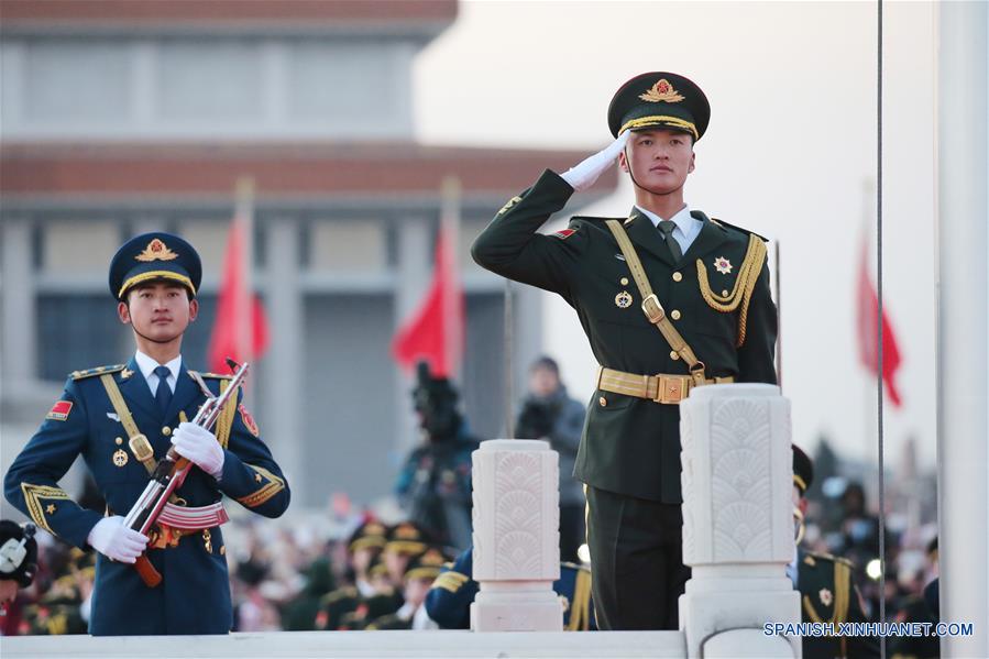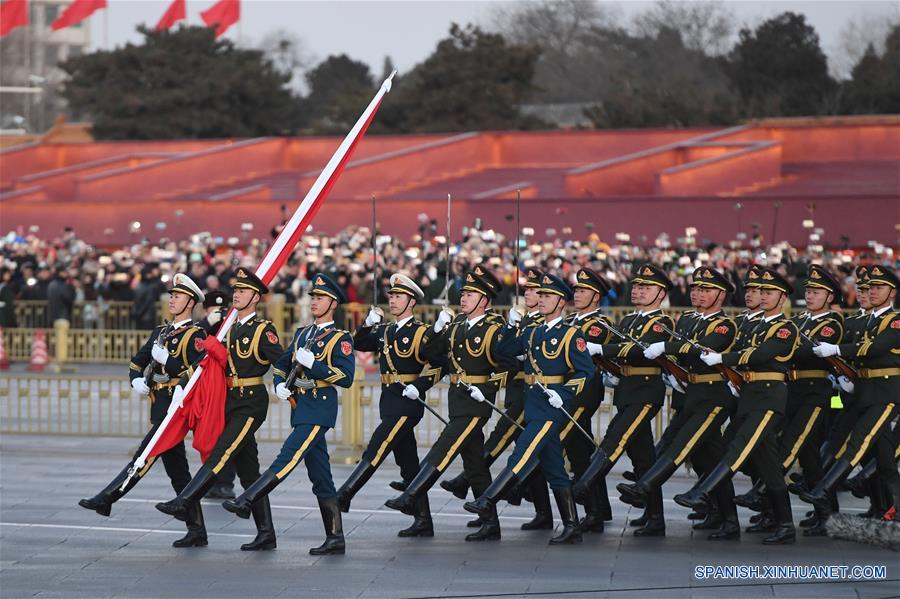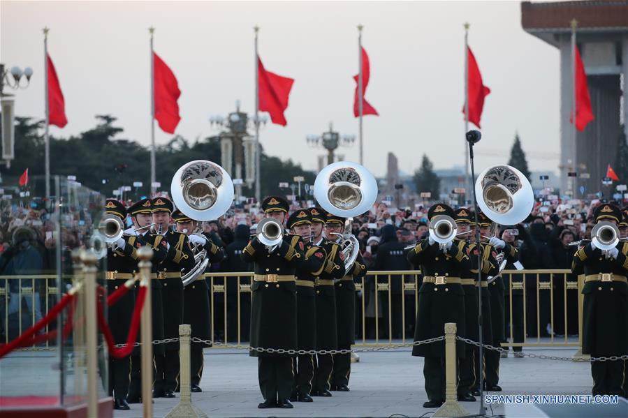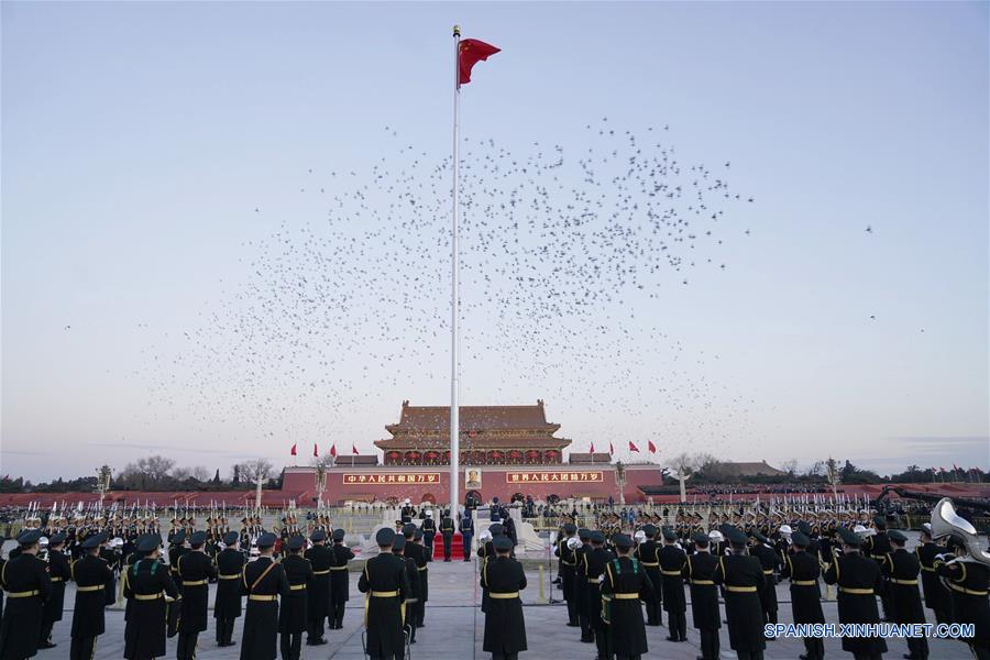 EPL iza bandera nacional en Plaza de Tian'anmen en A?o Nuevo por primera vez
