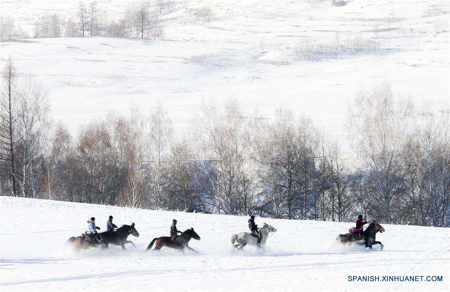 El primer festival de la nieve de Xinjiang fue inaugurado el 1 de enero y los turistas disfrutaron de carreras de caballos sobre nieve y esquí.