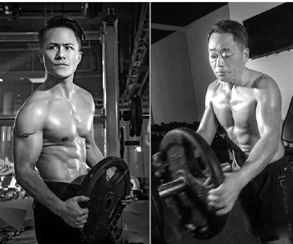 Ding Guoliang y Ding Youwang hacen ejercicio en el gimnasio. [Foto / Qianjiang Evening News]