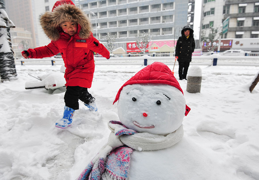 Un ni?o se divierte el jueves en Fuyang, provincia de Anhui, después de que una fuerte nevada en gran parte del país el miércoles por la noche bloqueara carreteras y provocara la cancelación de las clases en los colegios. AN XIN / PARA CHINA DAILY