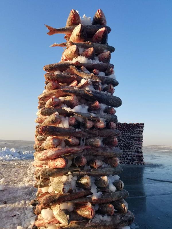 El muro de pescado de 10 metros de largo y 2 metros de alto. [Foto proporcionada a chinadaily.com.cn]