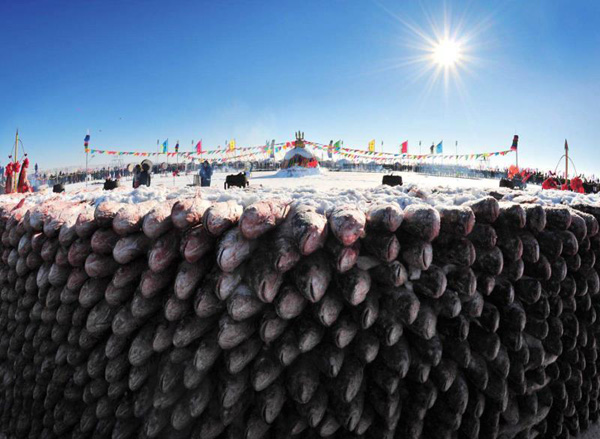 El muro de peces sobre el lago helado. [Foto proporcionada a chinadaily.com.cn]
