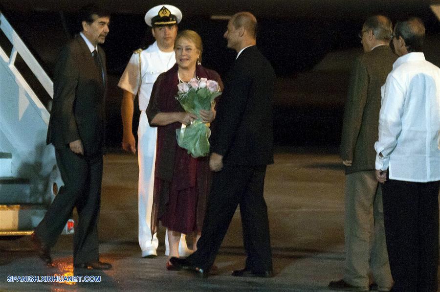 LA HABANA, 7 ene (Xinhua) -- La presidenta de Chile, Michelle Bachelet, llegó hoy a Cuba en una visita oficial de dos días, en la que se reunirá con su homólogo cubano, Raúl Castro, asistirá a la firma de dos acuerdos bilaterales y presidirá un foro empresarial conjunto.