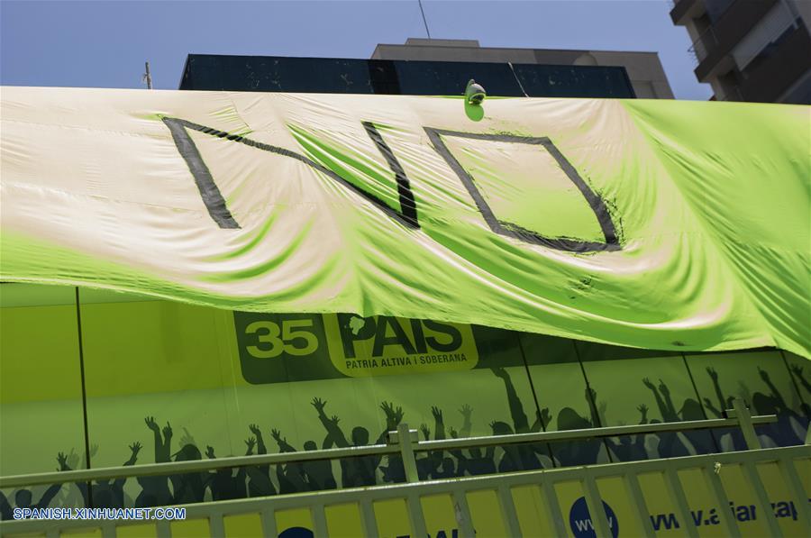 QUITO, enero 8, 2018 (Xinhua) -- Imagen del 4 de enero de 2018, de una pancarta gigante con la leyenda NO, al plebiscito convocado por el presidente ecuatoriano, Lenín Moreno, exhibida en la sede del partido Alianza País, en Quito, capital de Ecuador. Ecuador entró desde el miércoles en un período de campa?a electoral para promover el "Sí" y el "No" de cara a la consulta popular y referéndum del 4 de febrero, que impulsa el gobierno para, entre otras cosas, eliminar la reelección indefinida en la Constitución. (Xinhua/Santiago Armas)