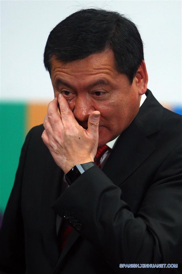 CIUDAD DE MEXICO, enero 10, 2018 (Xinhua) -- El secretario de Gobernación de México, Miguel Angel Osorio Chong, reacciona mientras presenta su renuncia al cargo al presidente mexicano, Enrique Pe?a Nieto, durante la presentacion de "Soy México, Tu Acta De Nacimiento en Línea", en la residencia oficial de Los Pinos, en la Ciudad de México, capital de México, el 10 de enero de 2018. Miguel Angel Osorio Chong agradeció al presidente, Enrique Pe?a Nieto, por la oportunidad de servir a México desde la institución que se encarga de la política exterior, de acuerdo con información de la prensa local. (Xinhua/Ricardo Aldayturriaga)