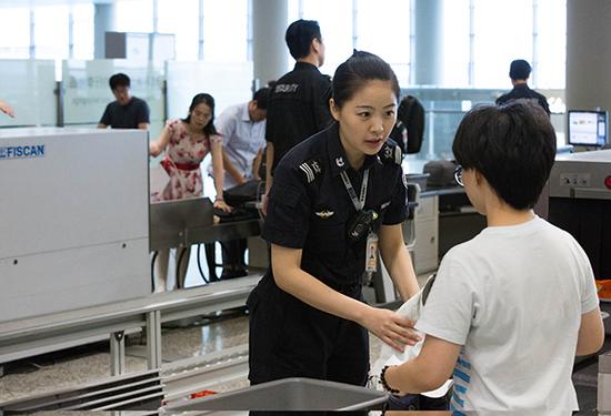En abril, ella fue destacada como ejemplo ante los 2.200 inspectores de seguridad que trabajan en el aeropuerto Hongqiao.