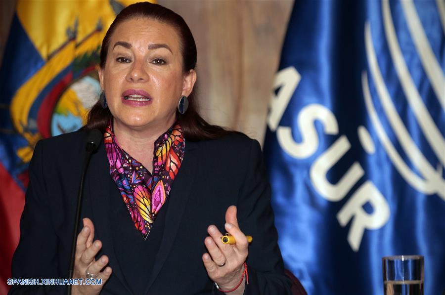 La ministra de Relaciones Exteriores de Ecuador, María Fernanda Espinosa, participa en una conferencia de prensa, en Quito, capital de Ecuador, el 11 de enero de 2018. (Xinhua/Santiago Armas)