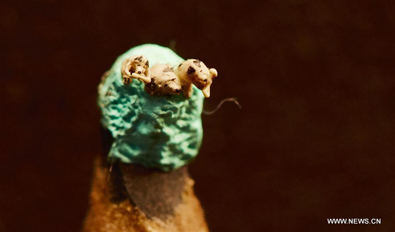 En saludo al a?o nuevo chino, el artista taiwanés Chen Forng Shean realizó con resinas la escultura que representa a un perro. El 18 de diciembre del 2017. [Foto: Xinhua]