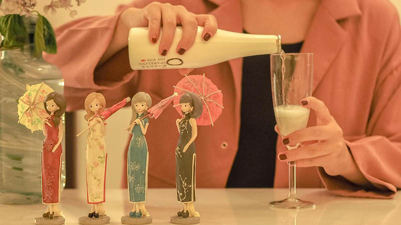 "El elemento burbujeante es nuestro aporte a la cultura del vino chino de arroz", afirma Huang. "A diferencia de los vinos de arroz ordinarios, el nuestro se fermenta dos veces para lograr delicadas burbujas y un sabor dulce."