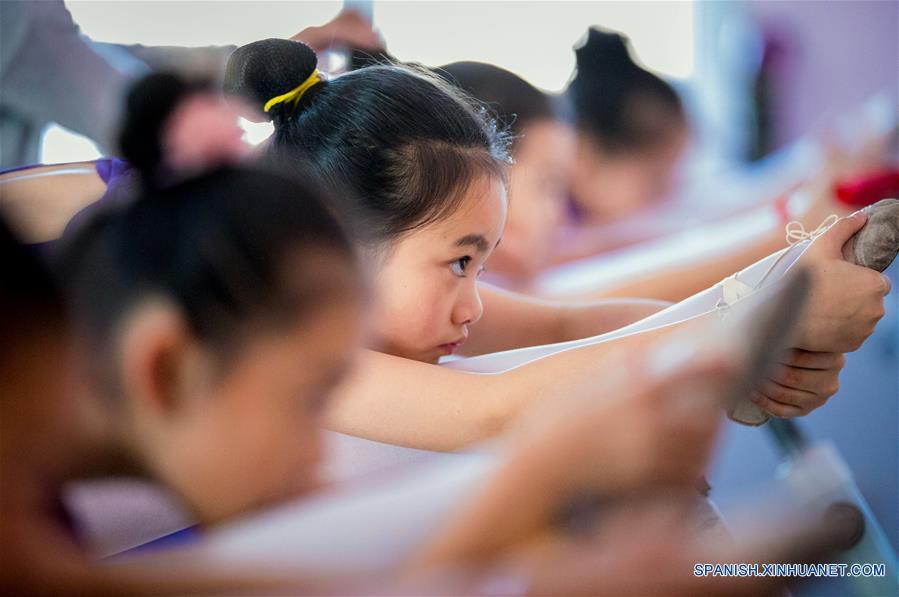Una ni?a practica habilidades básicas de danza en un centro fuera del campus, en Hohhot, capital de la Región Autónoma de Mongolia Interior, en el norte de China, el 16 de enero de 2018. Ni?as aprenden a bailar en el centro durante sus vacaciones de invierno. (Xinhua/Ding Genhou)