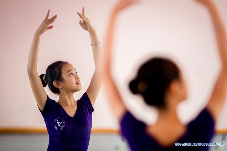 Una ni?a practica habilidades básicas de danza en un centro fuera del campus, en Hohhot, capital de la Región Autónoma de Mongolia Interior, en el norte de China, el 16 de enero de 2018. Ni?as aprenden a bailar en el centro durante sus vacaciones de invierno. (Xinhua/Ding Genhou)