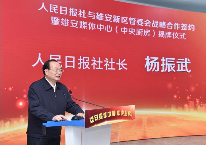 Yang Zhenwu, presidente de Diario del Pueblo, dijo en su discurso que espera fortalecer la cooperación entre las dos partes para contar bien la historia de Xiongan y ofrecer a Xiongan un fuerte apoyo de opinión pública para atraer talentos y reunir recursos. Xiongan se convierte en un modelo de construcción urbana liderado por el nuevo concepto de desarrollo. El nuevo modelo de Xiongan tendrá un impacto mundial.