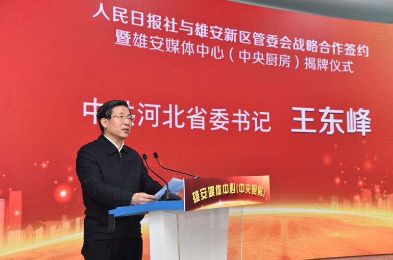 Wang Dongfeng, secretario del Comité del PCCh de la provincia de Hebei, expresó su sincero agradecimiento a Diario del Pueblo por su apoyo a Hebei a largo plazo. Dijo que el establecimiento del Centro de Medios de Comunicación de Xiongan crea una plataforma para la promoción nacional y extranjera de la nueva área, siendo ideal para difundir el sonido de Xiongan en el mundo y contar la historia de Xiongan. Esperamos que Diario del Pueblo continúe prestando atención y apoyando a Hebei. Nos centraremos en el desarrollo coordinado de la región Beijing-Tianjin-Hebei, planificaremos la construcción de la Nueva área de Xiongan, y pondremos en práctica la organización de los Juegos Olímpicos de Invierno de Beijing, la reforma y apertura, el desarrollo de alta calidad, la transformación y modernización industrial, además de la gobernanza medioambiental y la reducción precisa de la pobreza, transmitiendo la energía positiva de Hebei y demostrando la buena imagen de esta provincia.