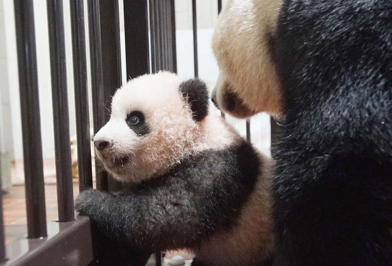 Xiang Xiang (a la izquierda) con su madre Shin Shin, en el Zoológico de Ueno, Tokio, el 10 de octubre del 2017. [Foto: IC]