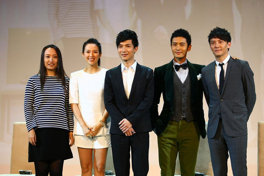 Miembros de la película, incluyendo (desde la izquierda) al director Li Fangfang, a la actriz Zhang Ziyi y a los actores Chen Chusheng, Huang Xiaoming y Chang Chen, asisten a un evento promocional en Beijing. [Foto: proporcionada]