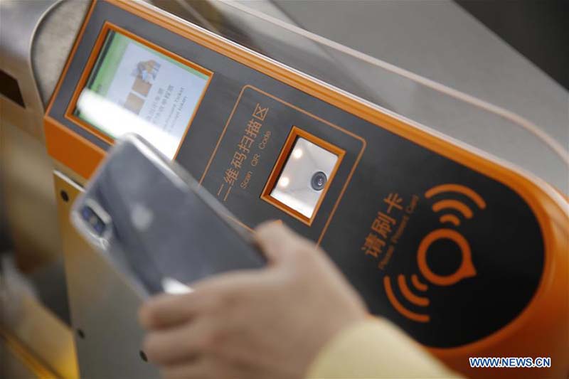 Un pasajero escanea un código QR de pago móvil a la salida de la estación de metro en Guangzhou, provincia de Guangdong, 28 de diciembre del 2017. [Foto: Xinhua]