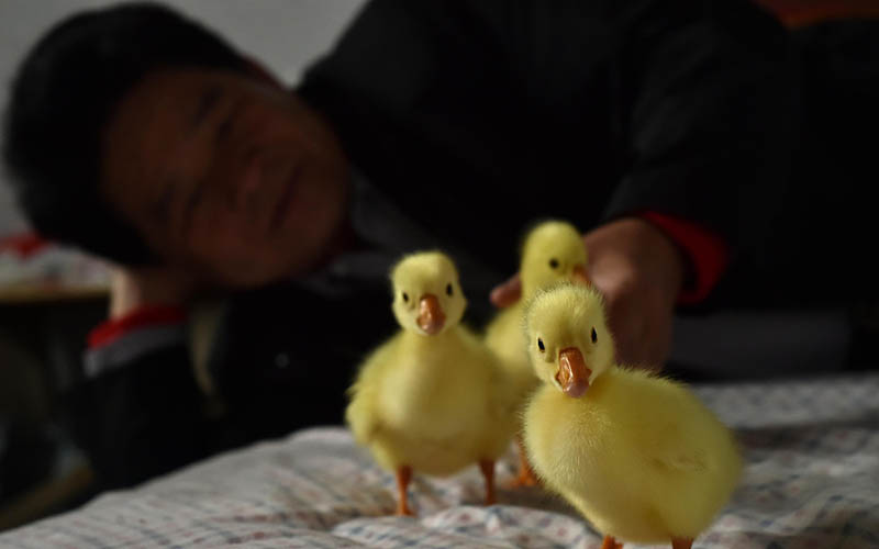 Yang Wen vende crías de gansos que no necesitan vivir en granjas con calefacción a otras granjas o los regala a las familias pobres. [Foto / VCG]