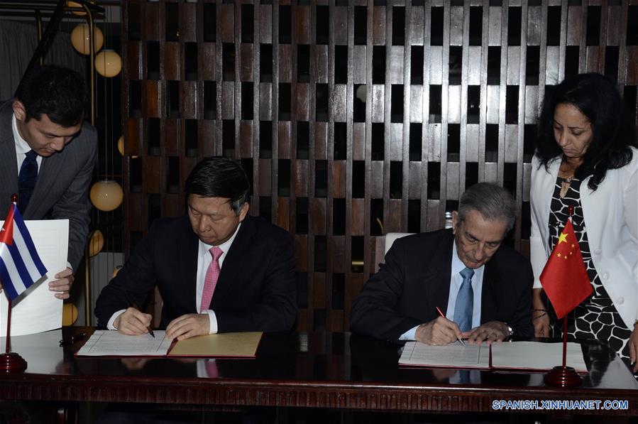 LA HABANA, enero 22, 2018 (Xinhua) -- El enviado especial del secretario general del Comité Central del Partido Comunista de China (PCCh), Xi Jinping, Song Tao (2-i), también director del Departamento Internacional del Comité Central del PCCh, y el jefe del Departamento de Relaciones Internacionales del Comité Central del Partido Comunista de Cuba (PCC), José Ramón Balaguer (2-d), participan durante la ceremonia de firma de un acuerdo sobre el intercambio y la cooperación entre el PCCh y el PCC que tendrá vigencia hasta el a?o 2020, en La Habana, Cuba, el 22 de enero de 2018. Song Tao, enviado especial del secretario general del Comité Central del Partido Comunista de China (PCCh), Xi Jinping, inició el lunes una visita a Cuba donde dialogó con autoridades del Partido Comunista de Cuba (PCC) y realizó otras actividades. (Xinhua/Joaquín Hernández)