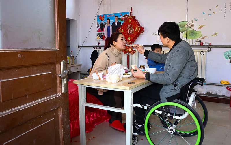 Hao Panpan y Fu Chengjun disfrutan de una comida en casa, el 9 de enero de 2018. [Foto / VCG]