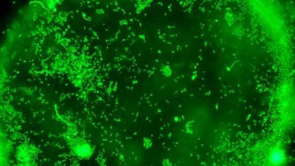 Fotografía de bacterias marinas, marcadas por fluorescencia. Los virus determinan su vida - MIT